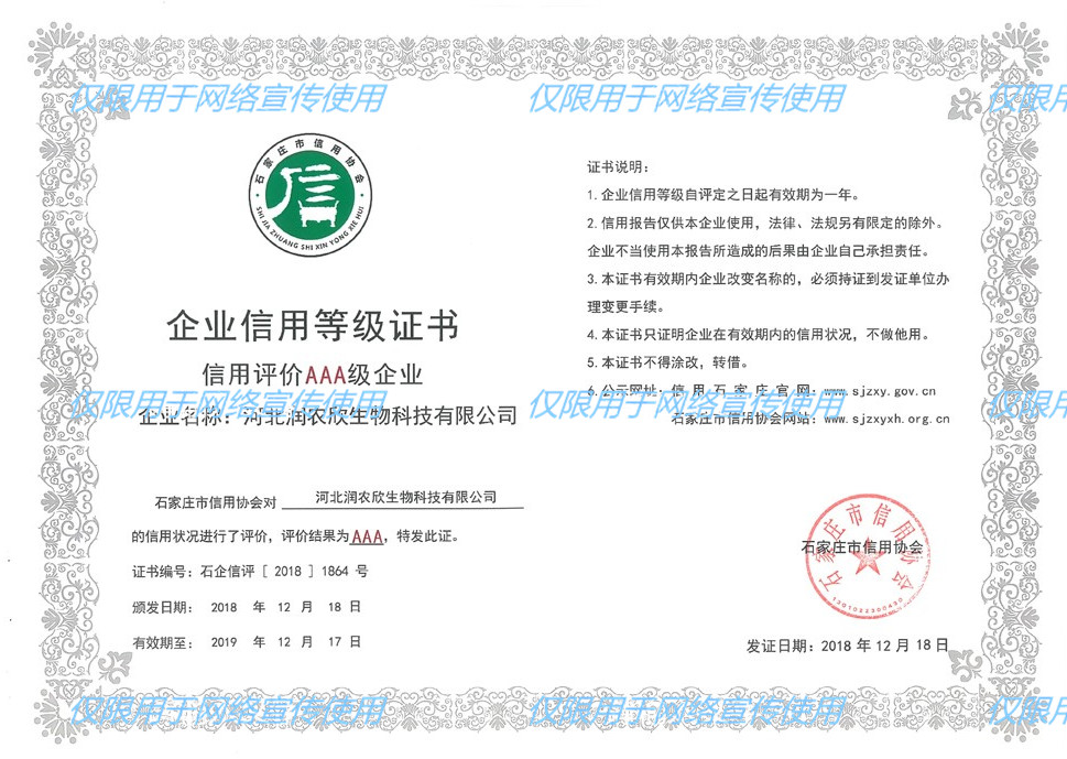 河北润农欣生物科技有限公司信用评级AAA级