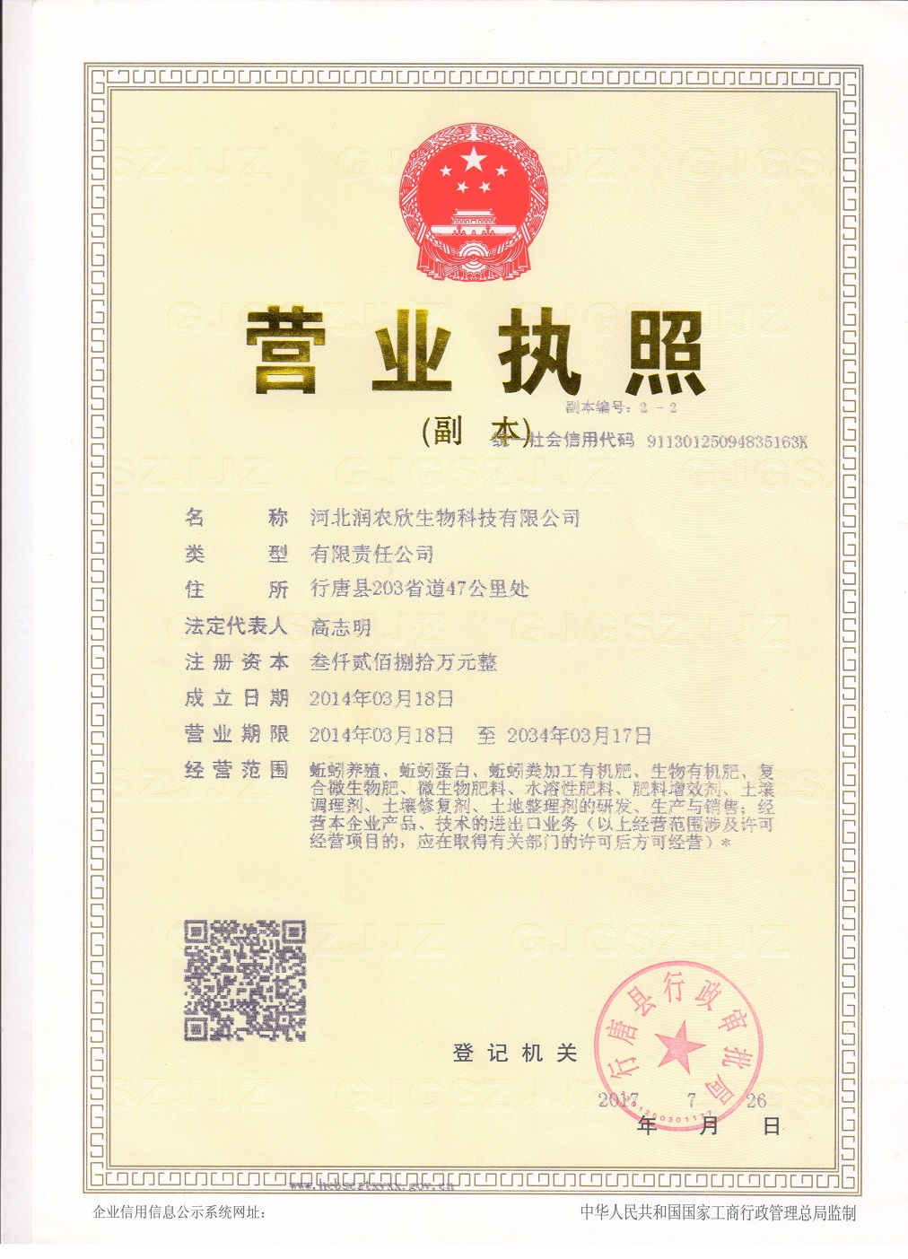 河北润农欣生物科技有限公司营业执照